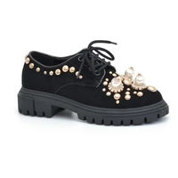 Czarne półbuty damskie Oxfordy SCA’VIOLA S-73 czarny zamsz