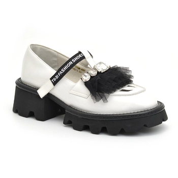 Półbuty Na Platformie SCAVIOLA Czarne z Lakierowanej Skóry
